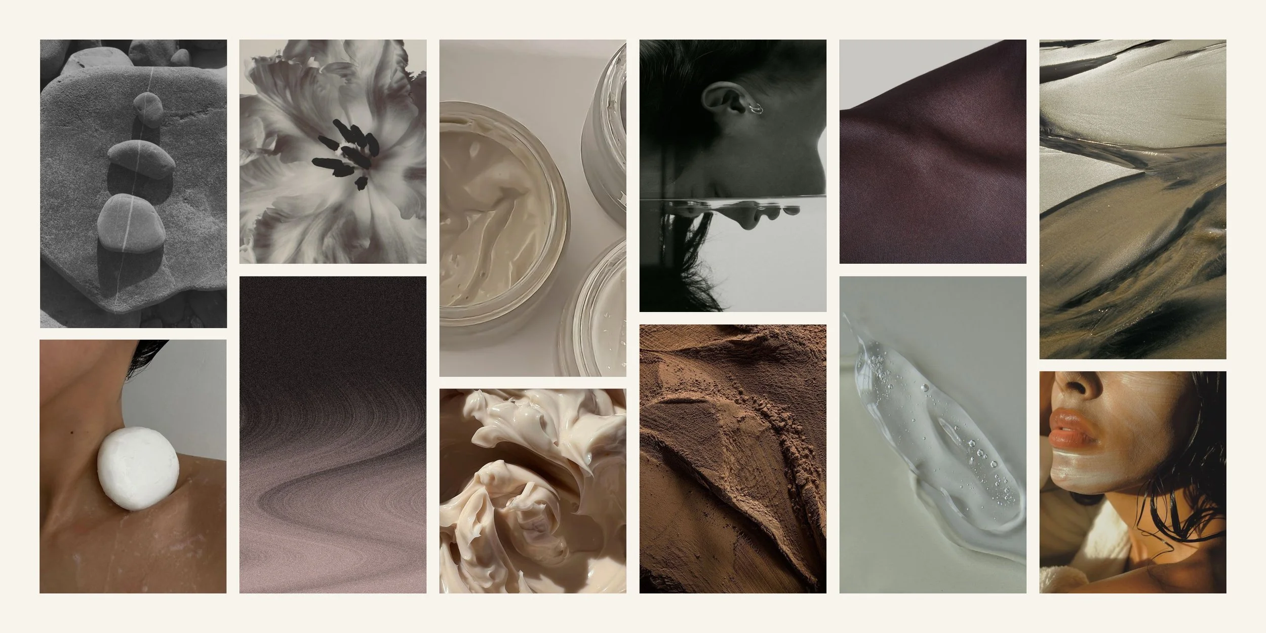 Micro branding direction for Poiema Skincare / Fonts, Color, Mood, Editorial *mood imagery from Pinterest